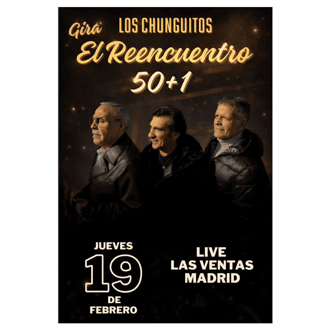 “El Reencuentro” marca una etapa muy especial en su trayectoria. Los Chunguitos regresan por todo lo alto para celebrar 50+1 años de historia, emoción y raíces, con nuevas canciones y una gira que recorrerá los principales escenarios de toda España. Un acontecimiento único para conmemorar más de medio siglo de éxitos que forman parte de la historia de la música española.